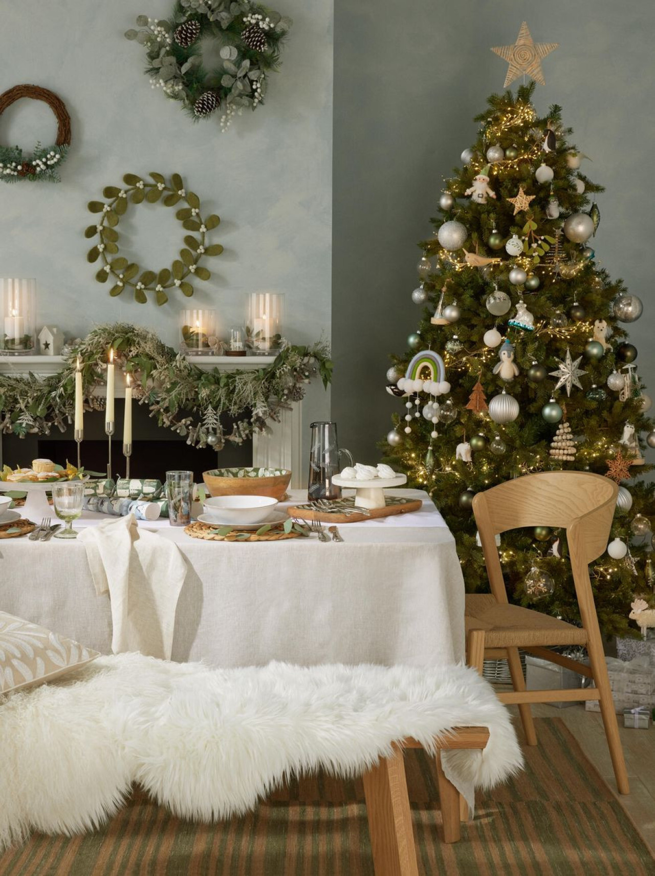 The first trend is very timeless and classic. The Nordic Christmas trend focuses on the North Pole. And we are not talking about Santa's Workshop, but about the nature of the North Pole and the Scandinavian countries. Think of lots of white, silver, some gold here and there, pine green and wood. Christmas ornaments such as porcelain polar bears and caribou fit in beautifully with this theme, as do our classic Delft blue Christmas baubles that are glossy white with a few cobalt blue decorations on top. The colors of snow, ice and deep blue skies.