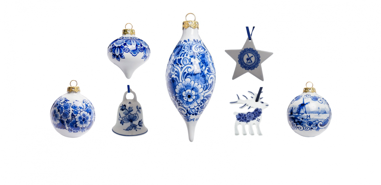 Delft Blue ornaments for a traditional decor in your christmas home.