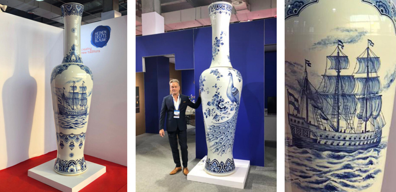 Heinen Delfts Blauw heeft de grootste Delfts blauwe vazen ter wereld gemaakt en dat is reden voor een groot feest! De twee reusachtige vazen zijn helemaal met de hand gemaakt en door onze meesterschilder met de hand beschilderd. Op de International Ceramics Fair in porseleinstad Jingdezhen in China zijn de vazen voor het eerst aan een klein publiek gepresenteerd. Vervolgens zijn ze zorgvuldig ingepakt en momenteel varen ze naar Nederland. De vazen komen aan bij onze Delfts blauw aardewerkfabriek PAAUW in Delft, waar ze groots onthaald worden en jij kan daarbij zijn!
